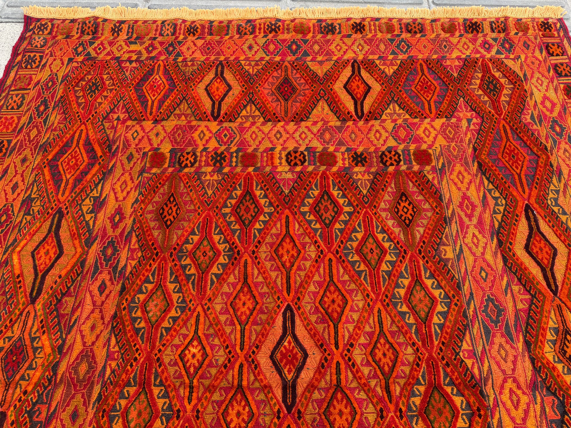 Stunning maimana geometric design hand made kilim will look beautiful on a wooden floor, tile floor or even on the wall.